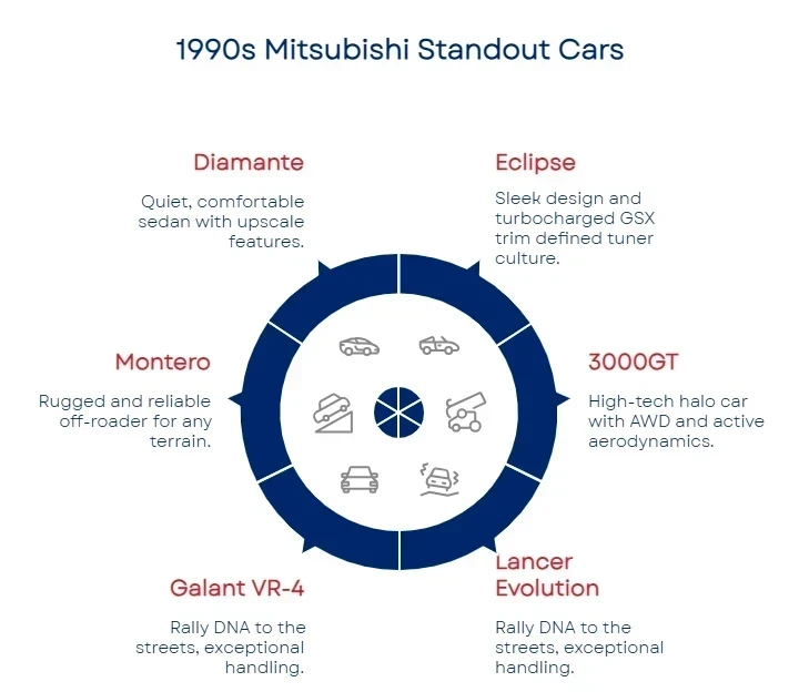 Mitsubishi’s 1990s lineup played a significant role in defining the tuner era.